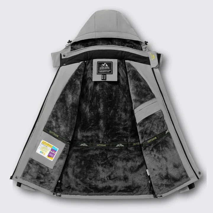 Ihr wasserdichtes Außenmaterial (3000 mm H₂O) hält zuverlässig trocken, während das winddichte Gewebe und das warme Fleecefutter optimalen Schutz und Komfort bieten.